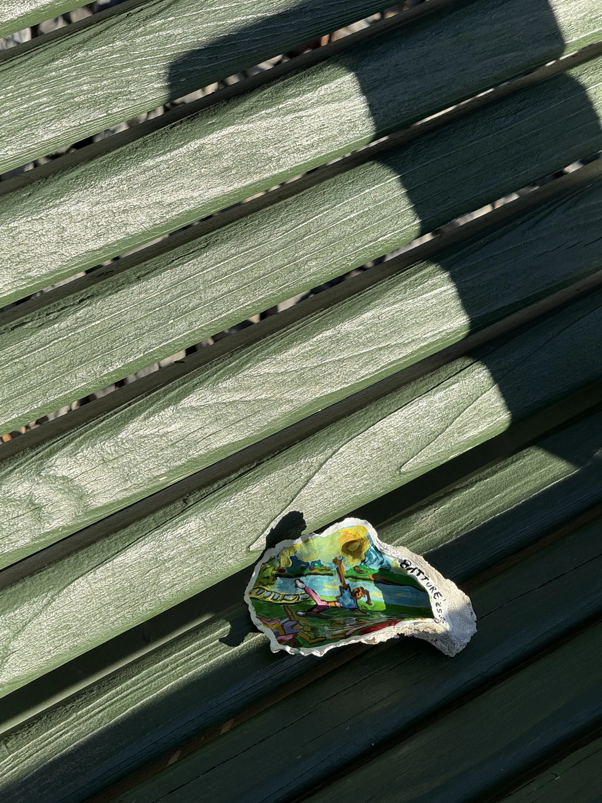 The Batture River Shell project is our ongoing sitewide shell hunt. Hand-painted by oyster shells created by New Orleans native artist, @carodesign_morrison, are hidden throughout the property for anyone to discover. Each shell is a one-of-a-kind, inspired by the river, the landscape, and the colors of this place.